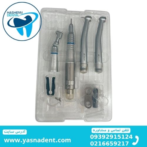 این ست شامل توربین پوش باتن، آنگل 1:1 و ایرموتور دو سوراخ یا چهار سوراخ (بسته به انتخاب دندانپزشک) است که همگی قابلیت اتصال به سیستمهای عمومی یونیت را دارند.برای خرید فوری محصول می توانید با کارشناس و مشاور یسنا دنت تماس حاصل فرمایید.جهت تماس کلیک کنید